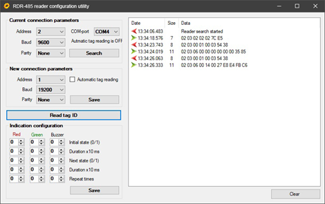 Rdr-485 Forecourt Rfid ReaderRDR-485 RFID reader with RS-485 interface is intended for reading RFID contactless identifiers (cards, tags, bracelets, others) of EM-marine (EM-4100) and Mifare types (UltraLight, Mifare One S50, Mifare One S70, others) and sending it over RS-485 interface. The reader control protocol is Modbus RTU. RDR-485 reader provides reading of the identifier from distance from 50 to 80 mm (depending on the conditions). Reader allows to configure buzzer and 2 color LEDs for indication (green and red). Configuration utility # RDR-485 readers have a configuration utility running under Windows OS, which allows to configure: - to configure reader’s communication address - to configure reader’s communication parameters - to search for the reader in case if you forgot its communication address and communication parameters - to enable and disable automatic tag reading (in this case the reader automatically sends the ID of the tag read to the line, for this feature to work without collisions the reader should be only one on the line) - to set indication of the reader by its LEDs and buzzer More information: https://www.technotrade.ua/rdr-485