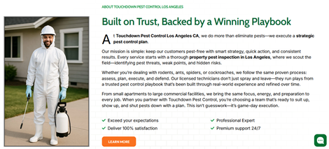 Touchdown Pest Control — Your Strategic Defense Against PestsTouchdown Pest Control — Trusted pest-control professionals serving Los Angeles, Orange County, Inland Empire & San Gabriel Valley. Services: Ants, rodents, spiders, roaches, mosquitos, bees & more. Approach: Integrated Pest Management — inspection ? custom treatment ? long-term prevention. Service Area: Anaheim, Corona, Irvine, Riverside, Pasadena, Woodland Hills & more. ?? Call: (626) 966-5600 ?? Address: 1730 W Cameron Ave, Suite 200, West Covina, CA 91790 ?? Email: info@touchdownpestcontrol.com Visit https://touchdownpestcontrol.com/