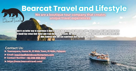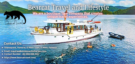 Bearcat Travel And Lifestyle - TownsquareDiscover the Philippines' premier boutique adventure travel agency specializing in luxury yacht charters in El Nido, Palawan. We offer exclusive yacht cruises and speedboat rentals for island hopping, intimate destination weddings, private events, and bespoke travel adventures. Our El Nido yacht charter services include multi-day cruises through private island tours, and customized sailing experiences. Couples love our intimate yacht weddings in El Nido. Adventure seekers rave about our speedboat tours. Our experienced team makes every trip unforgettable! Address: Town square, C. Hama, El Nido, Palawan 5313, Philippines Phone Number: +63 998-998-2017 Business Hours: Monday: 7:00am-8:00pm Tuesday: 7:00am-8:00pm Wednesday: 7:00am-8:00pm Thursday: 7:00am-8:00pm Friday: 7:00am-8:00pm Saturday: 7:00am-8:00pm Sunday: 7:00am-8:00pm Services: Travel Agency Specialties: Land, Air, or Sea Transfer . Accommodation Booking . Bespoke Trip Builder Payment Methods: Check, Credit Cards, Debit Cards, Visa, ATM / Debit, Mastercard, AMEX, Paypal, Discover Keywords: private yacht charter El Nido, luxury yacht experience El Nido, El Nido yacht tours, El Nido sunset yacht cruise, Bacuit Bay private yacht trip, private speedboat charter El Nido, El Nido speedboat tours, island-hopping El Nido private tour, El Nido multiday yacht expedition, El Nido luxury boat rental