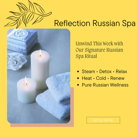 Reflection Russian Spa – Relaxation, Wellness, And Stress ReliefExperience soothing relaxation at Reflection Russian Spa with professional massage and wellness therapies designed to relieve stress, relax muscles, and refresh your body. Enjoy a clean, peaceful, and comfortable environment with trained therapists and calming treatments that help you feel rejuvenated, relaxed, and renewed. Ideal for body wellness, detox, and complete relaxation. .