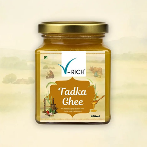 V-Rich Tadka Ghee | Ready Tadka In SecondsBuy V-Rich Tadka Ghee for instant tadka in seconds. Just heat and pour—no extra ingredients. Natural, preservative-free and time-saving.