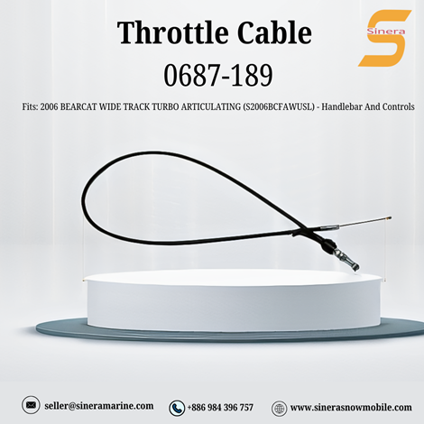 Throttle Cable 0687-189For snowmobile experience smooth acceleration, Throttle Cable 0687-189 is suitable for you, a product from Sinera Marine. Fits: 2006 BEARCAT WIDE TRACK TURBO ARTICULATING (S2006BCFAWUSL) - Handlebar And Controls - Check this product link for more information https://www.sinerasnowmobile.com/buy/main_products.php?pid=382 For more details, feel free to contact us anytime: - seller@sineramarine.com - +886 984 396 757 -https://www.sinerasnowmobile.com/