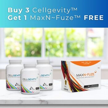 Cellgevity & Maxn-Fuze Combo PackLimited Time Offer Cellgevity & MaxN-Fuze Combo Pack Fuel your wellness routine with a powerful combination of advanced cellular support and clean, nutritional replenishment. For a Limited Time, when you purchase three bottles of Cellgevity, you’ll receive one box of MaxN-Fuze FREE. Elevate your health & wellbeing - take advantage of this incredible offer today.