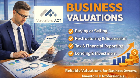 Expert Business Valuations Services In Act | Valuations ActNeed accurate and independent business valuations to support confident decision-making? Valuations ACT provides professional business valuation services across the ACT, delivering reliable insights for business owners, investors, lenders, and legal professionals. Our qualified valuation experts assist with: ? Buying or selling a business ? Business restructuring and succession planning ? Financial reporting and tax compliance ? Legal matters, disputes & family law ? Lending, finance & investment analysis At Valuations ACT, we apply industry-recognised valuation methodologies, deep local market knowledge, and strict compliance standards to ensure transparent, defensible, and accurate valuation reports tailored to your specific business needs.