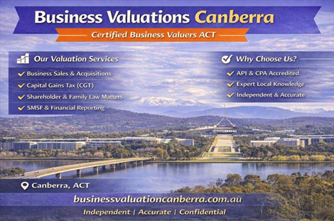 Business Valuations Canberra | Certified Business Valuers ActNeed professional business valuations in Canberra? Business Valuation Canberra provides independent, accurate, and fully compliant business valuation services across the ACT for businesses of all sizes and industries. Whether you are buying or selling a business, planning for succession, restructuring, or meeting taxation or legal requirements, a professionally prepared business valuation report is essential. Our experienced business valuers assess financial performance, assets, market conditions, industry trends, and risk factors to deliver clear and defensible valuation outcomes. We provide business valuation reports for a wide range of purposes including business sales and acquisitions, capital gains tax, SMSF compliance, shareholder disputes, family law matters, and financial reporting. Each valuation is prepared using recognised valuation methodologies such as the income approach, market approach, and asset-based approach, ensuring accuracy and transparency. Serving Canberra and surrounding regions, Business Valuation Canberra delivers tailored valuation solutions backed by strong local market knowledge and professional standards. Our reports are suitable for accountants, lawyers, business owners, investors, and financial institutions. If you require an independent and reliable business valuation in Canberra, our experts are ready to assist.
