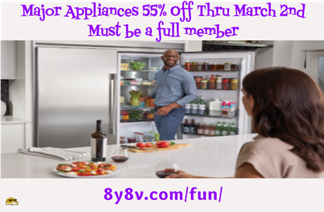 Mjor Appliance SaleOnly thru March 2. 55% off major appliances. Refrigerators, Washers, Dryers and more. We do this kind of thing all the time. You must be a full member to get access. Don't wait! #MajorAppliances $HugeDiscounts #SaveBig #PopsSaysItFitz