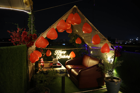 Rooftop Candle Light Dinner In Ahmedabad For Couple CelebrationIf you're looking for the perfect rooftop candle light dinner in Ahmedabad, take a look at Tent Rooftop Restro & Cafe. It's renowned for its romantic atmosphere as well as its stunning, well-planned layout, decor and one of the most unforgettable private candlelight dinner in Ahmedabad specifically designed for couples who wish to turn your love to dream to life in a classy way. Imagine a table for dinner under the night sky, and then the music of a romantic couple, candles and stunning city view. This is the ideal venue for celebrations of birthdays and anniversary celebrations as well as wedding proposals, or for a romantic present. Our team is careful to every detail of your event to ensure the most unforgettable rooftop candle light dinner in Ahmedabad for couple that ensures privacy, style and an romantic atmosphere. At Tent Rooftop Restro & Cafe, we specialize in creating the most enchanting candle light dinner in Ahmedabad experiences. Everything from the decor to flowers, and tasty dishes from a variety of food options, the menu is designed to create the perfect night. No matter what you're looking to plan a romantic evening out with your loved one and want to enjoy a private candle light dinner Ahmedabad offers the perfect blend of elegance and romance. Enjoy a minute and take in the evening under lighting of the city and creating your night's romantic.