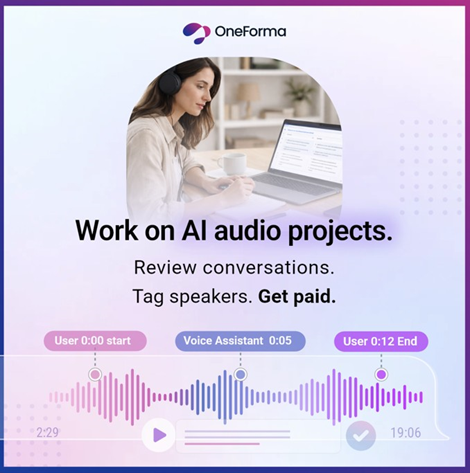 Oneforma | Annotation - Project KoalaJoin Project Koala today. At OneForma,? we are inviting qualified contributors? to participate? in our new remote annotation project. Purpose: Project??Koala supports the training and evaluation? of advanced speech recognition systems. Participants will contribute? by accurately identifying and labeling conversational events? in recorded??audio interactions between??users and??voice assistants. Location: Remote. Open? to native-level speakers of: Chinese??(Hong Kong), Chinese (Taiwan), Chinese Simplified (China),??Dutch (Belgium), English (Singapore), German (Germany),??Malay (Malaysia), Norwegian-Bokmal (Norway), Turkish (Turkey). Please??note: This project? is not available? in Nigeria. Responsibilities: Participants will listen? to recorded conversations and??apply precise, time-stamped labels to identify speakers and conversational events according? to detailed project guidelines. All selected contributors must: • Pass the OneForma Certification process • Complete KYC verification • Successfully pass required practice??tasks within the client’s annotation tool before beginning production Duration and Commitment: Ongoing project. Participants are required to commit a minimum? of? 20??hours per??week, subject? to task availability and performance quality. Main Requirements: • Native fluency? in Chinese??(Hong Kong) • Strong listening comprehension and ability to distinguish multiple speakers • Excellent attention? to detail and ability to follow structured linguistic and technical guidelines • Reliable computer, stable internet connection, microphone, and headset • Comfortable??using web-based annotation tools • Previous experience? in annotation, transcription, linguistics,? or data labeling? is? a plus, but not mandatory. Compensation: Payment? is provided per approved??audio hour? or??task.??Rates will? be shared with qualified candidates during the onboarding process. Apply today: https://go.oneforma.com/Koala_JP A member? of our team will contact qualified candidates with the next steps.