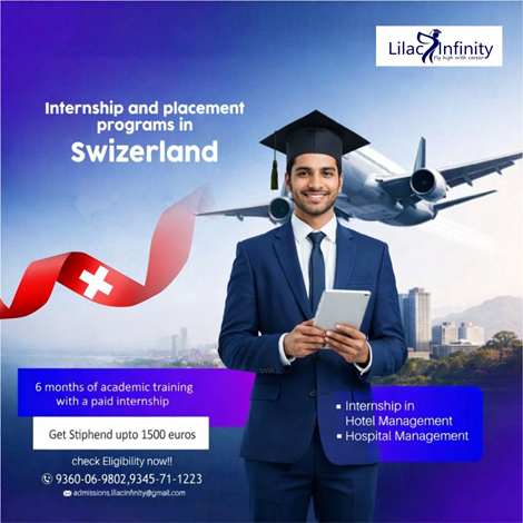 Lilac Infinity Offers Paid Internship Program In Europe"Looking for a study abroad destination that balances academic excellence with an inspiring lifestyle? European region offers an inspiring foundation for international education, and the quality of life makes this destination particularly attractive for students planning a long-term international future through Lilac Infinity study abroad program offeres paid internship opportunities. Switzerland and Italy a preferred study destinations, offering structured education systems supported by global standards, and Lilac Infinity a trained leading admission office provides comprehensive Hotel and Hospitality Management programs that combine academic excellence, Paid internships and Healthcare Placement programs with real-world industry exposure. A key highlight of Hotel and Hospitality Management programs is the 6+6 internship program, In hospitality management, students gain hands-on experience in international hospitality brands, while healthcare-focused students benefit from real-time medical practice across European healthcare systems.Through Lilac Infinity Study Abroad Program, students receive comprehensive guidance from our young experts at every stage, from program selection and admissions to visa support and career planning. Known for its modern infrastructure and safe living conditions, Switzerland and Italy are the leading European destinations for international students, known for their internationally recognised universities. website: https://lilacinfinity.com/ https://lilacinfinity.com/contact-us Instagram: https://www.instagram.com/lilac_infinity24/ YouTube: https://www.youtube.com/@LilacInfinity-j5c LinkedIn: https://www.linkedin.com/in/shamila-infinity-5a417935a/ Twitter: https://x.com/InfinitySh99983 Contact us: 9360069802 "