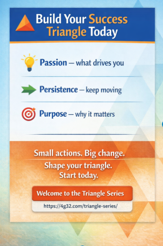 Over 50 And Still Looking For PurposeLife after 50 can feel like a merry go round. Busy every day but not moving forward. Discover the simple Triangle of Success that brings passion, persistence, and purpose together. It may change how you see the road ahead. Read the story and start building your own triangle today.