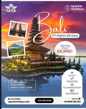 Best Bali Tour Packages 7N/8D – Bali Tour Packages For Couple & Romantic Bali PackagesDiscover the beauty of Bali with our Best Bali Tour Packages 7 Nights 8 Days, specially designed for couples and romantic getaways. Experience breathtaking beaches, iconic temples, lush rice terraces, and unforgettable sunsets in the Island of Gods. Our package includes flights, hotel accommodation, transfers, and sightseeing for a stress-free vacation. Perfect for honeymooners and couples looking for a romantic escape. Explore Bali’s culture, adventure activities, and luxury experiences in one amazing trip. Plan your Bali holiday today: https://sparkleholidays.club/packages/bali-with-singapore-airlines