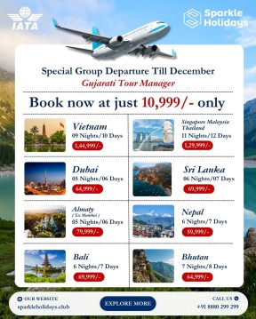 International Tour Packages From Ahmedabad - Group Departure Tours Till DecemberPlanning an international trip from Ahmedabad? Sparkle Holidays offers special group departure international tours from Ahmedabad till December with a Gujarati tour manager. Explore Vietnam, Dubai, Bali, Sri Lanka, Nepal, Bhutan, Almaty, and Singapore Malaysia Thailand at the best price. These group tours include hotel stay, meals, sightseeing, transfers, and visa assistance. Perfect for families, couples, and first-time international travelers. Book your international group tour from Ahmedabad today with Sparkle Holidays.