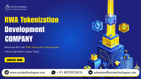 Maximize Roi With Rwa Tokenization - High Return AssetsStruggling to unlock the true value of your real-world assets? It’s time to turn them into high-performing digital investments. With our RWA Tokenization Development Solutions, you can convert real estate, commodities, and financial assets into secure, tradable tokens that maximize ROI and generate consistent returns. At Osiz Technologies, we deliver end-to-end tokenization services - from strategy and smart contract development to compliance and platform deployment - ensuring a smooth and scalable experience. Whether you're an investor, startup, or enterprise, our solutions are designed to boost liquidity, create new revenue streams, and accelerate asset growth. Why Choose Us? 1. Secure & compliant blockchain solutions 2. Scalable revenue-focused platforms 3. Expert team with proven industry experience Unlock high-return opportunities today! Get a FREE consultation and discover how to transform your assets into profitable digital investments. Get a Free Demo: https://www.osiztechnologies.com/blockchain-development-company Call: + 91 8925923818 Mail: salesteam@osiztechnologies.com