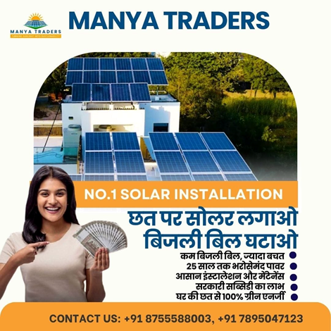 Best Solar Panel Installation Services In UttarakhandManya Traders is a top distributor of residential and commercial solar panel services in Kotdwar, Uttarakhand, a trusted name in providing Rooftop Solar Solutions, commercial solar installations, Street Lighting Systems, and Playground Equipment in Kotdwar and nearby regions. Our mission is to deliver sustainable energy solutions and high-quality infrastructure products that help communities, businesses, and institutions grow in a smart and eco-friendly way.