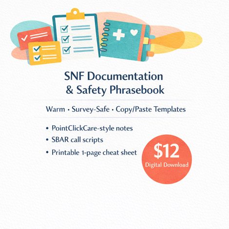 Snf Charting Made Easy: $12 Phrasebook & Cheat SheetNew to the SNF floor? Master your documentation with a 24-year Nursing Veteran’s guide. Copy-and-paste templates for Diabetes, ROM, Skin, and SOB. Professional, objective, and survey-safe. Get the 11-section PDF and a 1-page printable cheat sheet today for just $12.