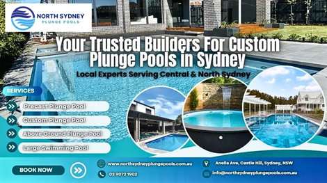 North Sydney Plunge PoolsAt North Sydney Plunge Pools, we design and install high-quality plunge pools that transform compact outdoor spaces into refined retreats. From sleek above-ground options to seamless inground designs, every pool is built with durability, style, and long-term performance in mind. North Sydney Plunge Pools specialises in custom and precast plunge pools designed to suit modern homes and tighter blocks. Our team delivers tailored solutions that blend effortlessly with your property while standing up to North Sydney’s conditions. Address: Anella Ave, Castle Hill, Sydney, NSW 2154 Australia Phone Number: 02 9072 1902 Business Hours: Monday: 9:00am-5:00pm Tuesday: 9:00am-5:00pm Wednesday: 9:00am-5:00pm Thursday: 9:00am-5:00pm Friday: 9:00am-5:00pm Saturday: Closed Sunday: Closed Services: Swimming pool contractor Specialties: Custom Plunge Pool, Precast Plunge Pool, Above Ground Plunge Pool, Swimming Pool, Lap Pool, Luxury Pool, Infinity Pool Payment Methods: Check, Credit Cards, Debit Cards, Visa, ATM / Debit, Mastercard, AMEX, Paypal, Discover Keywords: sydney plunge pool, plunge pools sydney, plunge pool sydney, concrete plunge pools, precast plunge pools, pool builders, swimming pool builders, concrete pools, pool company, concrete pool builders sydney