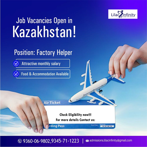 Lilac Infinity Unskilled Job Opportunity In Kazakhstan"Kazakhstan is a fast-growing Central Asian country, becoming a popular destination for many people looking to work abroad. With its expanding manufacturing and industrial sectors, there is a high demand for factory helpers to support industrial growth. Lilac Infinity offers unskilled job opportunities in Kazakhstan for the position of factory helper, including packing, loading, assembly support, and basic maintenance in modern industrial facilities, which do not require any qualifications. Lilac Infinity is a trained leading Overseas Education Admission office that is a trusted organization that connects job seekers with overseas employment opportunities, and our young expert counsellors assist you with the employment visa support and ensure you meet all the legal requirements through an unskilled job in Kazakhstan.Workers or job seekers earn a competitive salary up to 700 USD each month and also receive free food and accommodation, and a smooth visa process, through our Lilac Infinity Kollam Unskilled job in Kazakhstan. Lilac Infinity offers a Refer & Earn program, where you have the chance to help your friends and family with overseas job opportunities that reward you for referring friends.Visit our website: https://www.lilacinfinity.com/ Instagram: https://www.instagram.com/lilac_infinity24/ YouTube: https://www.youtube.com/@LilacInfinity-j5c LinkedIn: https://www.linkedin.com/in/shamila-infinity-5a417935a/ Twitter: https://x.com/InfinitySh99983 contact us: 9360069802"