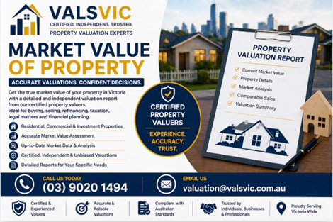 Market Value Of Property Vic | Accurate Property Valuation ExpertsWant to know the current market value of your property in Victoria? Our certified property valuers provide accurate and independent valuation services for residential, commercial, and investment properties. We use up-to-date market data, industry expertise, and proven valuation methods to determine the true value of your property. Ideal for buying, selling, taxation, legal matters, and financial planning.