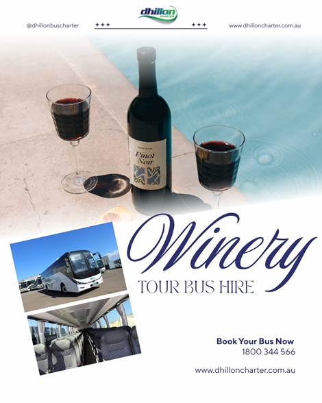 Luxury Winery Tour Bus Hire For Groups In MelbourneTravel in comfort with premium winery tour bus hire. Perfect for group outings, celebrations, and day trips. Enjoy a smooth and stylish journey with Dhillon Bus Charter. Call Now: 1800 344 566