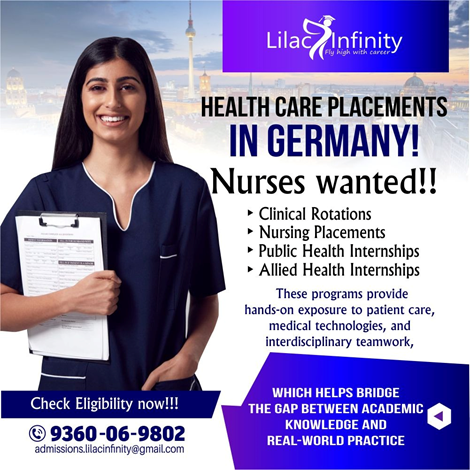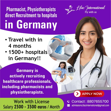 Lilac Infinity Germany Is Actively Recruiting Healthcare ProfessionalsGermany is actively recruiting healthcare professionals, including pharmacists and physiotherapists. Direct Hospital Recruitment | Competitive Salary Pharmacists play essential roles in hospital pharmacies, assisting with medication management and patient education. Physiotherapists are needed to work in hospitals, clinics, and specialised rehabilitation facilities where they assist with patient recovery and mobility support. Contact us: 9360069802 dm.shamilainfinity@gmail.com https://www.lilacinfinity.com/