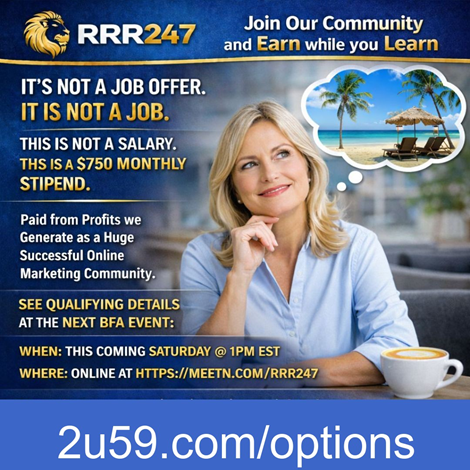 How Can One Event Unlock Up To $750 To Start Building IncomeIf you’ve been searching for a real, accessible way to create momentum, this is it. The BFA (Big Financial Awakening) event offers guidance, structure, and the potential of $750 in stipend to help you begin building income the smart way. No hype. No confusion. Just a clear path forward. If you’re ready to step into something that can actually move your life forward, start here: https://2u59.com/options. #BeyondTheUsual #StartYourRise #IncomePathways