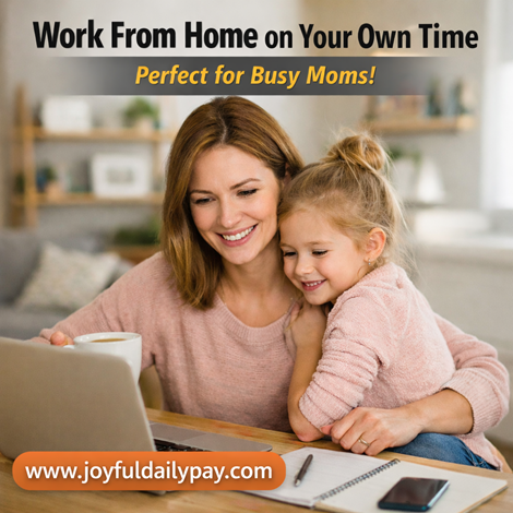 Work From Home On Your Own Time – Ideal For Busy MomsAre you a busy mom looking for a flexible way to earn from home? Whether it’s during nap time, school hours, or in the evenings, this gives you a way to build income around your schedule. This program shows you how to create a real online income using digital products — with step-by-step guidance and mentorship. No prior experience needed Work from home Learn at your own pace Support included You’ll need: A phone or laptop At least 2 hours a day Willingness to learn This is not a quick fix — it’s for moms ready to build something real. Learn more: https://www.joyfuldailypay.com